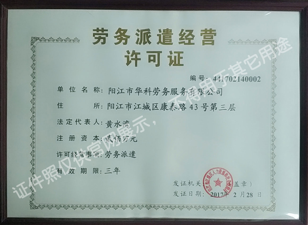 華科勞務(wù)服務(wù)有限公司是專業(yè)從事人事代理、勞務(wù)租賃、人力派遣及管理的綜合性服務(wù)機(jī)構(gòu),是首批獲得廣東省人力資源廳、陽江市勞動(dòng)和社會(huì)保障局頒發(fā)人力資源許可證的合法單位。公司秉承“誠信務(wù)實(shí)、專業(yè)熱情、滿意第一、服務(wù)社群”的經(jīng)營(yíng)理念,在勞務(wù)派遣業(yè)務(wù)的基礎(chǔ)上,更致力于合同制工人(臨時(shí)工、實(shí)習(xí)生、假期工)方向發(fā)展,為用工企業(yè)及時(shí)輸送合格的各類人才,合理調(diào)配人力資源的有序流動(dòng),幫助求職者尋求更加滿意的就業(yè)渠道和崗位,切實(shí)維護(hù)求職者的合法權(quán)益。